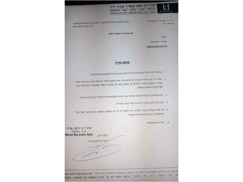 מכתב תודה מלקוח מרוצה לאחר שפתרתי לו בעיה בתחום האינסטלציה