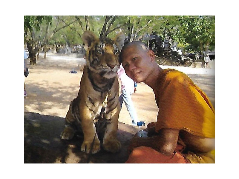 נותנים לאנשים להיות רק ליד טיגריסים צעירים מאוד ועל כל טיגריס שומרים ומטפלים מספר נזירים