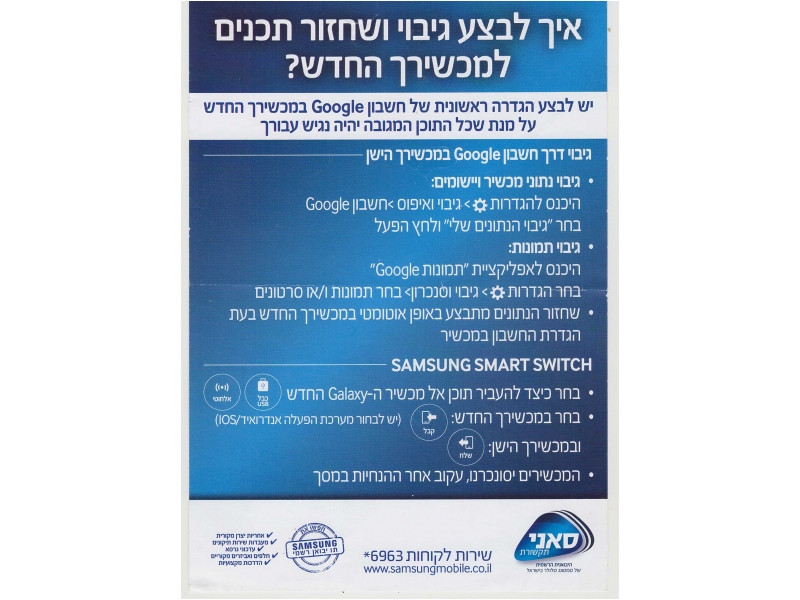 ההמלצה ניתנת על פי הנחיות חברת "סאני תקשורת" היבואנית הרישמתי של סמסונג סלולר בישראל.
