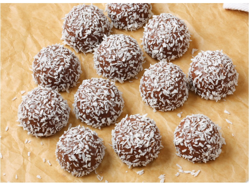 התערובת צריכה להיות מעט דביקה ורכה - כדורי שוקולד מתקשים בקירור