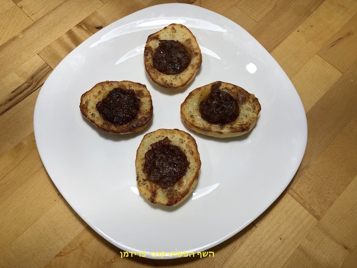 סירות תפו״א בניחוח רוזמרין במילוי בצל מקורמל טבעוני ללא גלוטן,