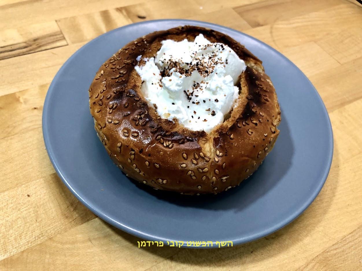 קערת לחמנייה במילוי שמנת חמוצה ופלפל שחור גרוס,