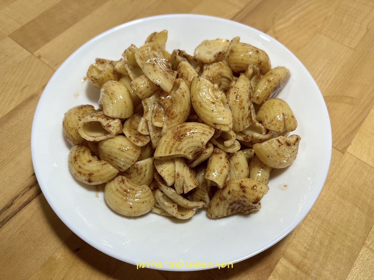 פסטה לומקה ריגטה(צינורות מכופפים)עם סוכר דמררה וקינמון בניחוח ווניל טבעוני: