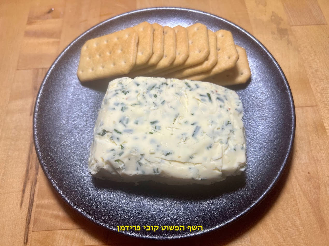 חמאת שום עירית טרייה מלח גס צמחוני ללא גלוטן:
