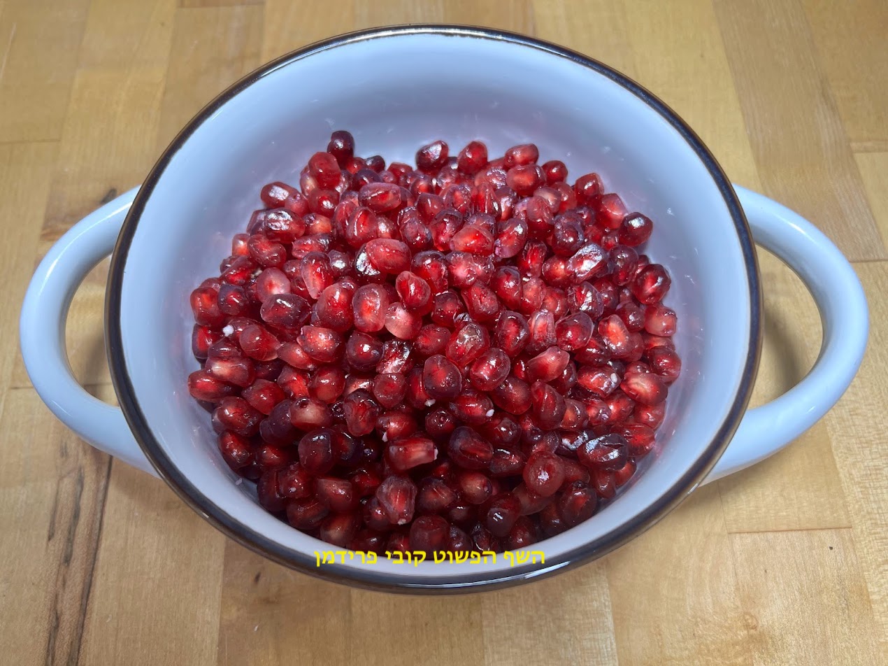 לחתוך חריצים בעובי הקליפה לאורך חיבורי המחיצות הלבנות בין הגרגירים,