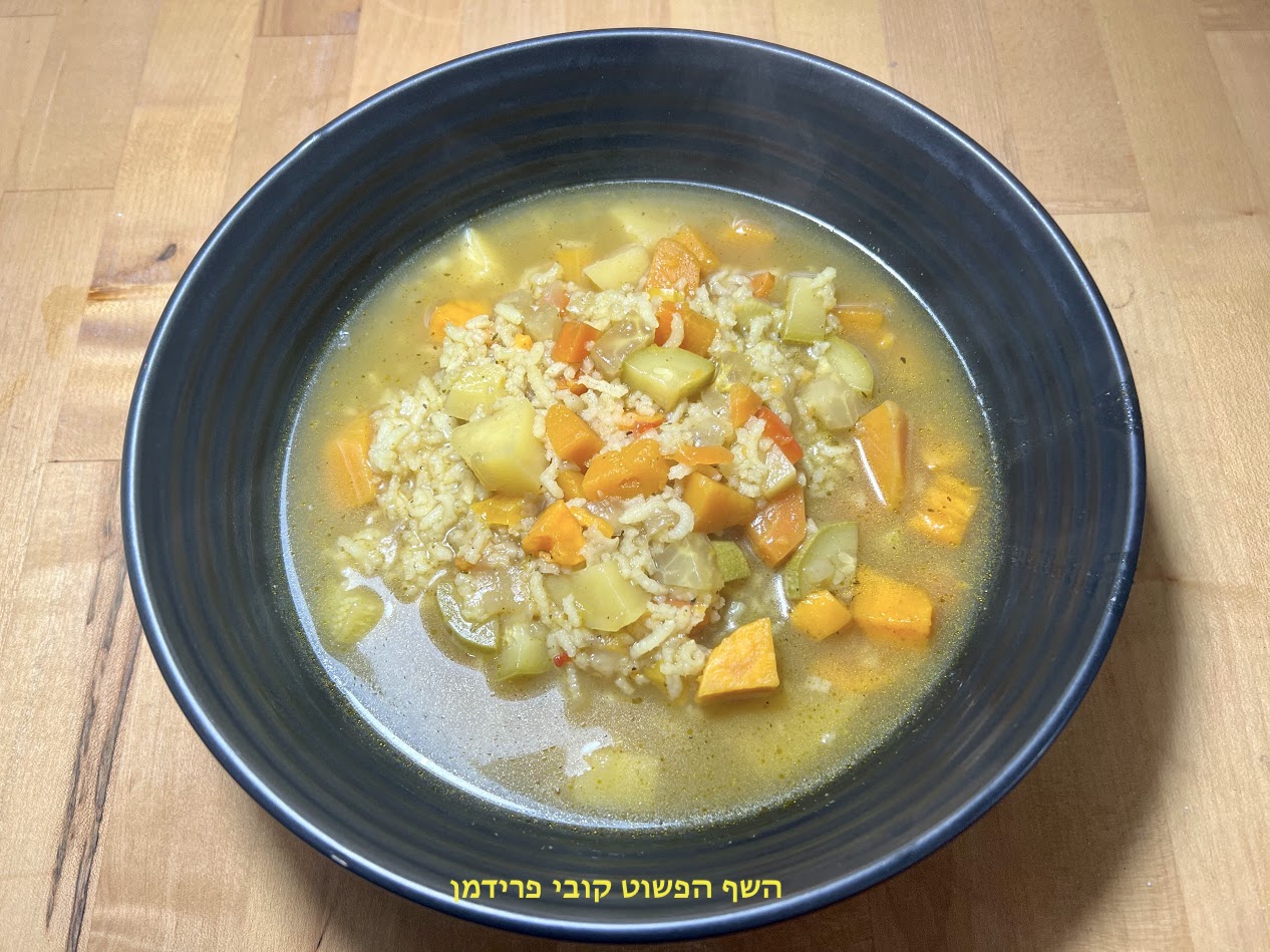 מרק ירקות חורפי עשיר ומשודרג עם אורז טבעוני ללא גלוטן: