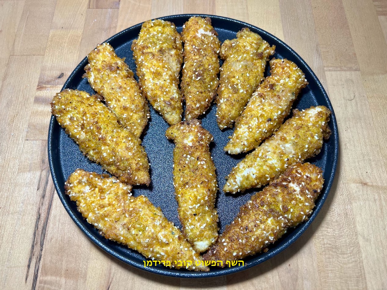 שניצל פילה עוף בציפוי פירורי קורנפלקס מתובלים כשר לפסח ללא גלוטן: