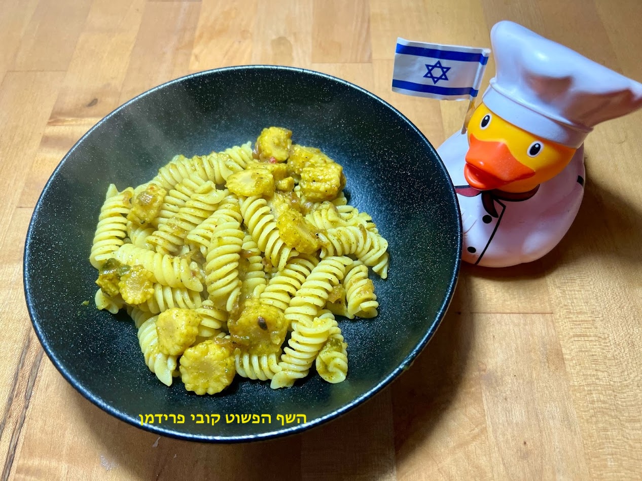פסטה עם תירס גמדי ובצל מקורמל טבעוני ללא גלוטן: