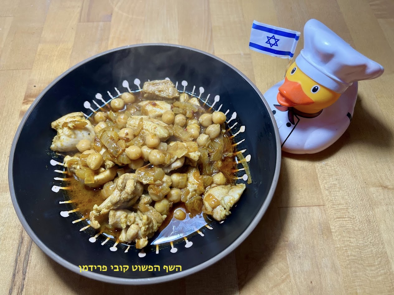 תבשיל פרגיות וחומוס ברוטב בצל מקורמל ללא גלוטן: