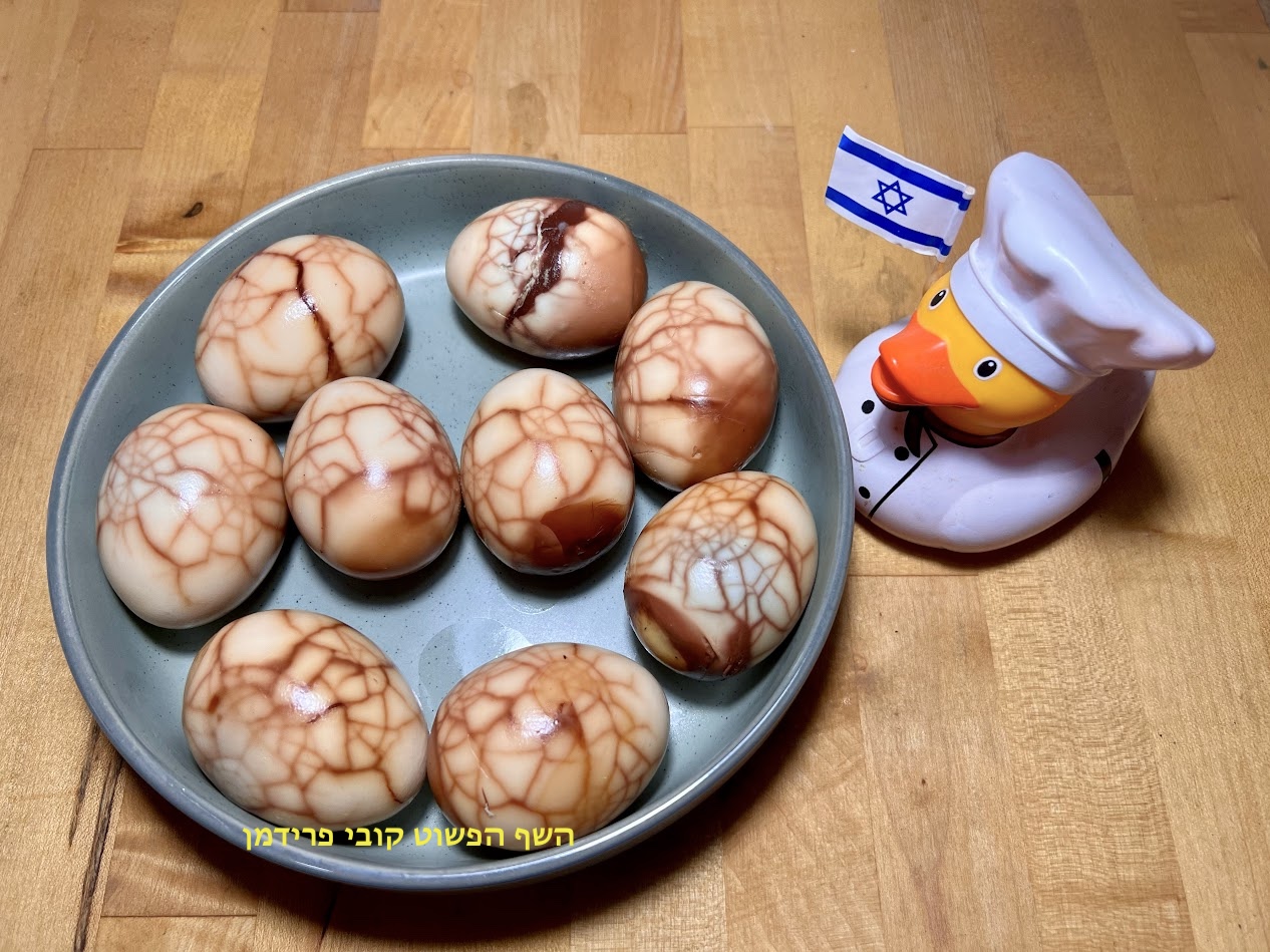 ביצים קשות מתובלות ומשוישות בבישול ארוך לליל הסדר: