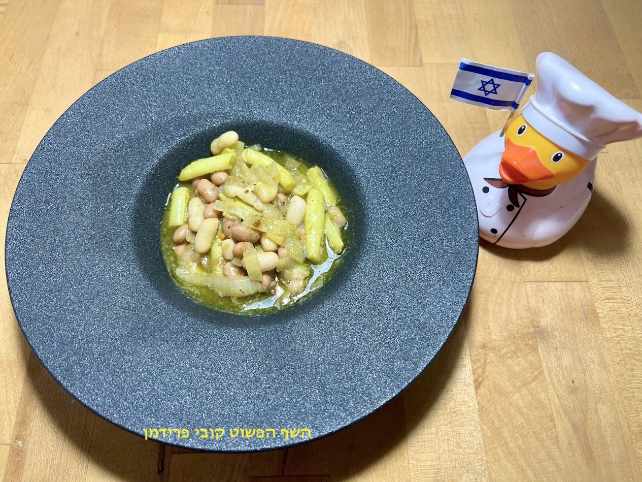 תבשיל שעועית צהובה שעועית לבנה שעועית חומה עם בצל מוזהב טבעוני ללא גלוטן:
