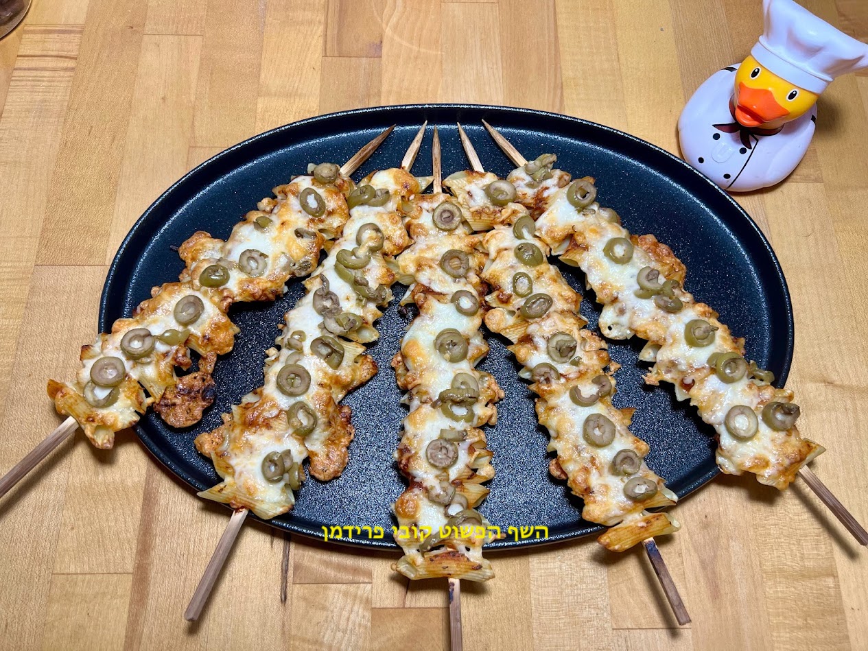 פיצה פסטה על מקל(שיפודים)עם זיתים צמחוני פינוק לילדים ולגדולים לשבועות: