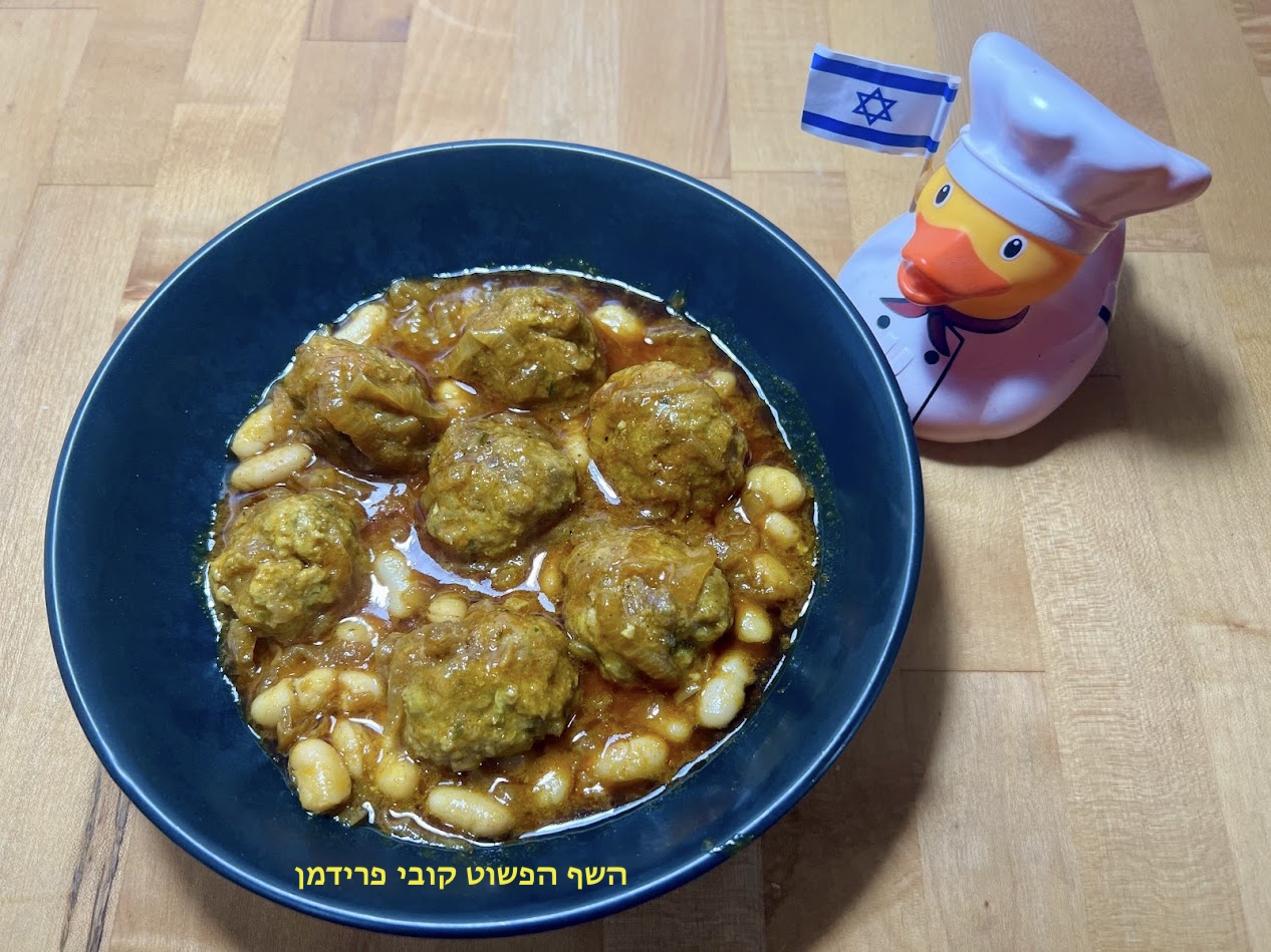 קציצות בקר הודו ברוטב בצל מקורמל ושעועית לבנה ללא גלוטן: