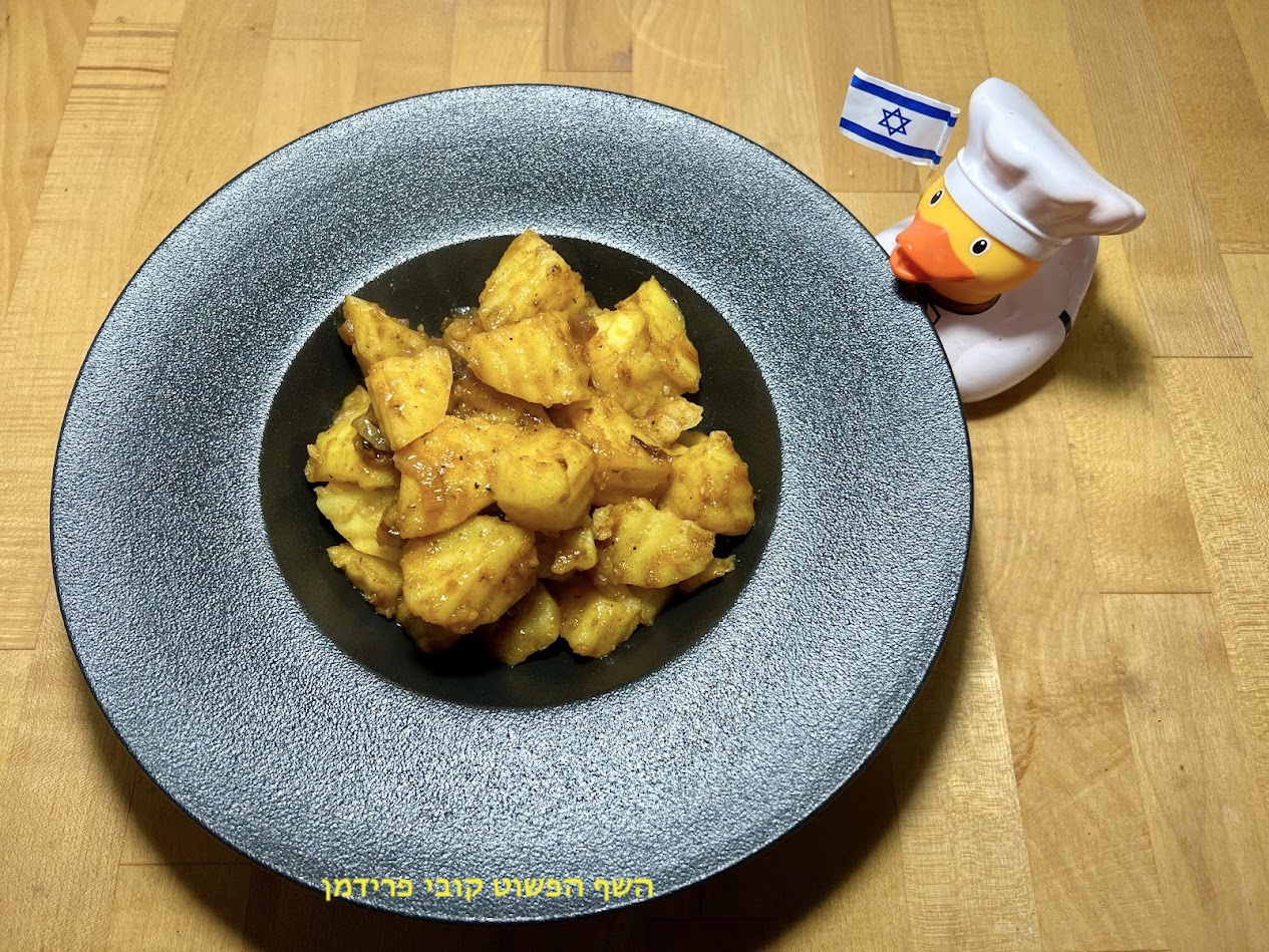קוביות תפוא מזוגזגות ברוטב אדום ובצל מקורמל טבעוני ללא גלוטן: