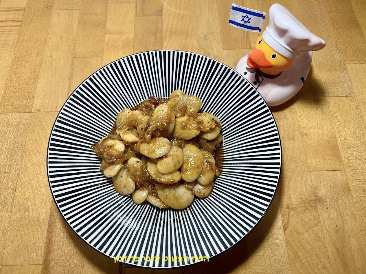 שעועית בובס(לימה)עם בצל מקורמל טבעוני ללא גלוטן: