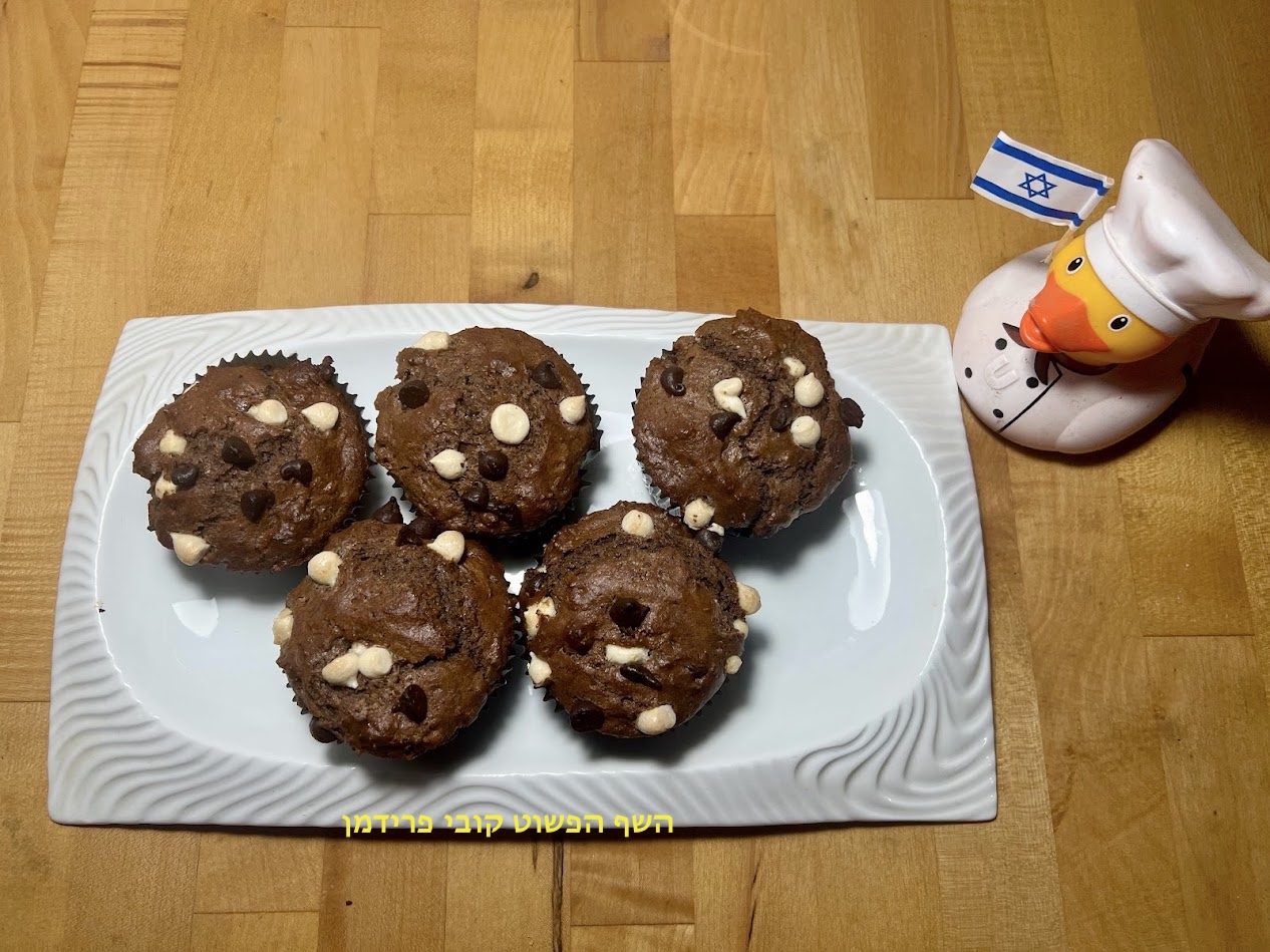 מאפינס שוקולד(חרובים)עם שוקולד צ'יפס לבן ומריר מקמח קוסמין מלא,
