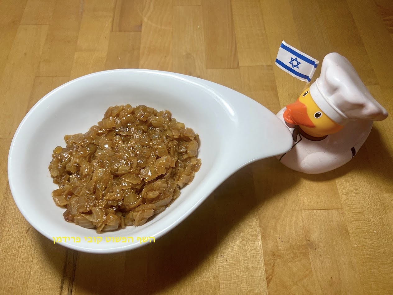בצל מקורמל (תהליך ״טיגון״)לשימוש ולהקפאה לשימוש עתידי טבעוני ללא גלוטן: