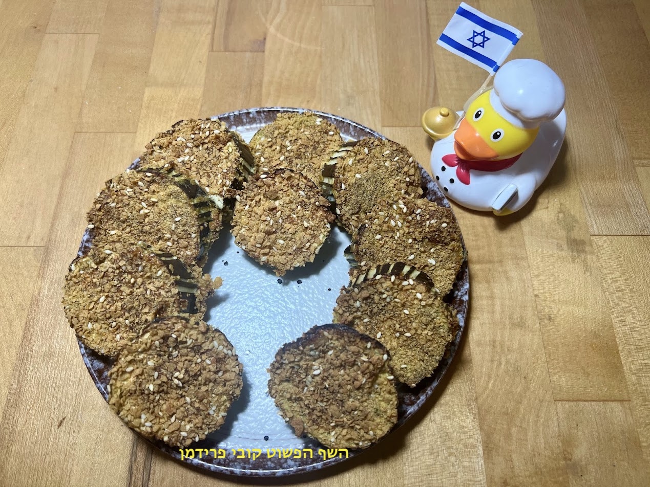 טבעות שניצל חציל אפוי בתנור צמחוני ללא גלוטן:
