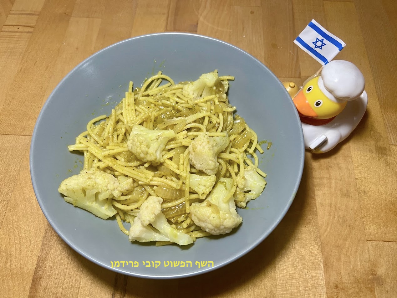 פסטה מקרוני עם פרחי כרובית ובצל מוזהב טבעוני ללא גלוטן: