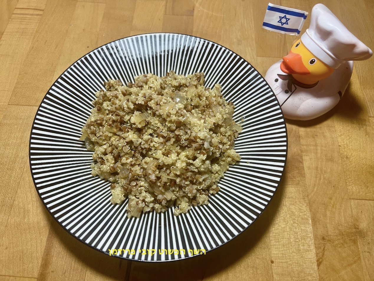 כוסמת קלויה עם קינואה ובצל מוזהב טבעוני ללא גלוטן: