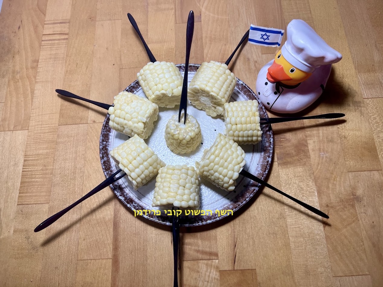 לקנות חבילת תירס לבן מתוק במיוחד לקלף לחתוך לטבעות(של קלחים)באורך 4 ס״מ,