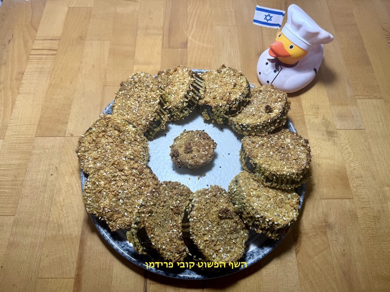 שניצל אפוי מטבעות חצילים צמחוני ללא גלוטן: