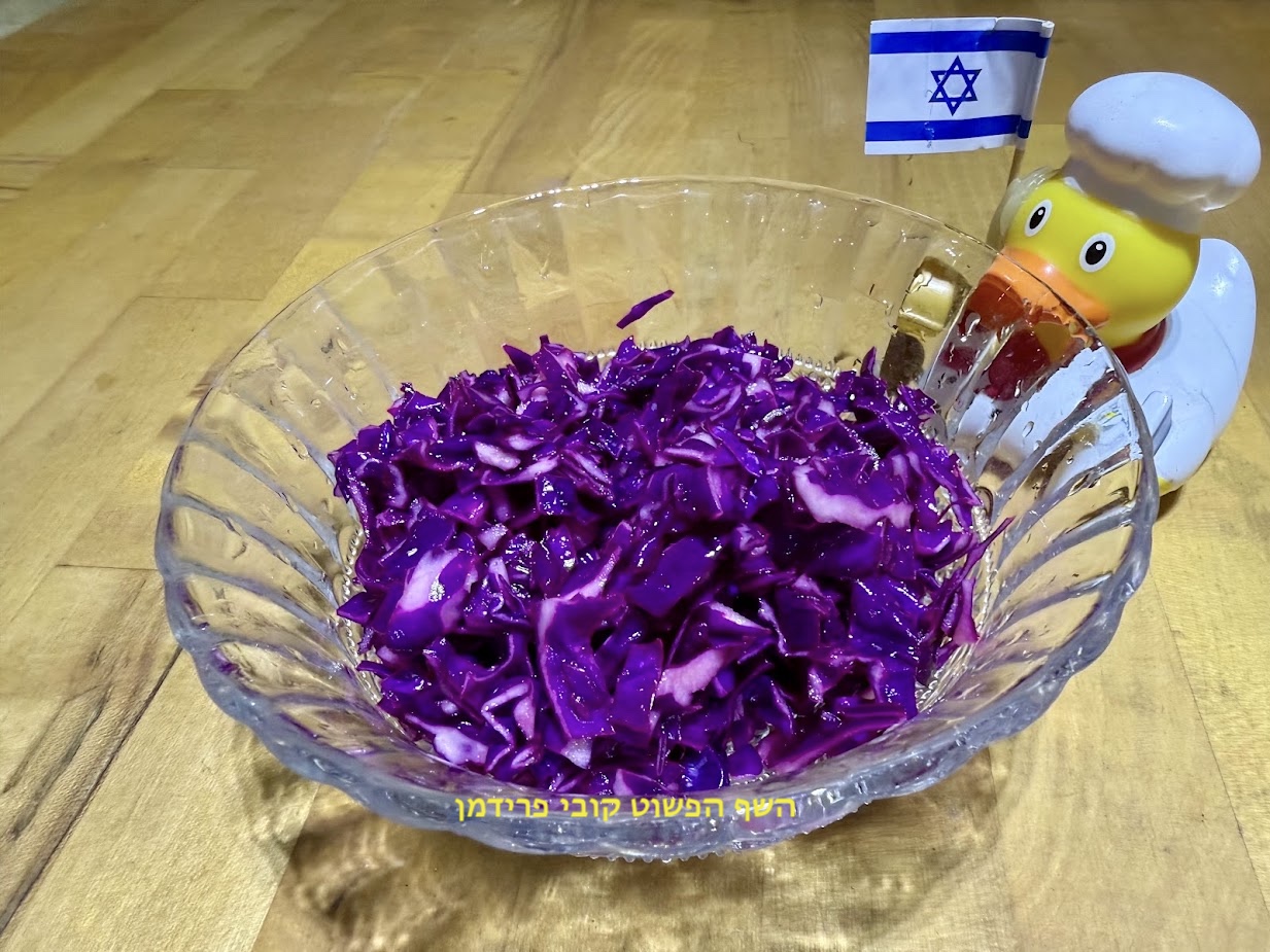 לקחת כרוב סגול בינוני(600 גרם)לקצוץ דקדקדק להכניס לקערת ערבוב,