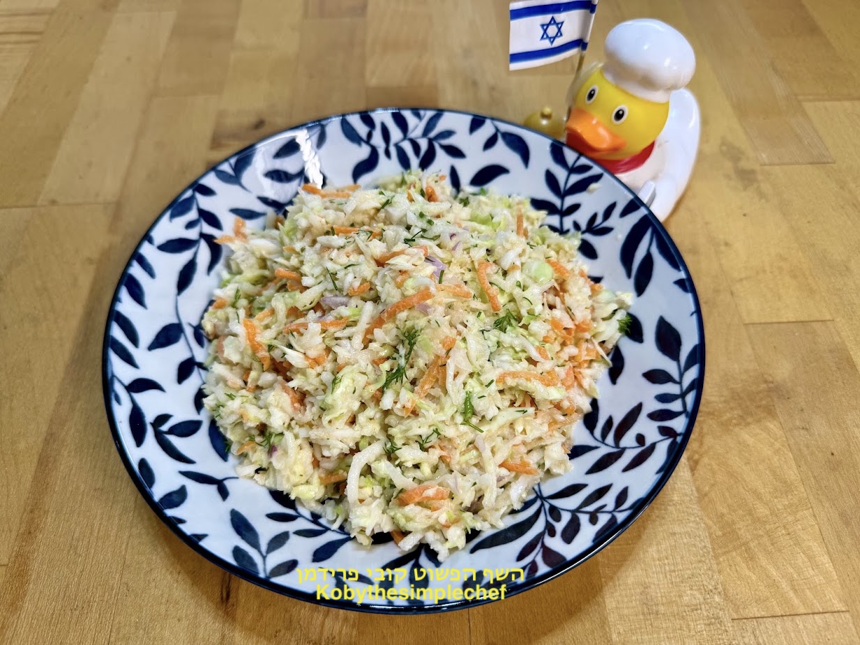 סלט כרוב גזר וקולורבי בניחוח שמיר ומיונז עשיר ומשודרג צמחוני ללא גלוטן: