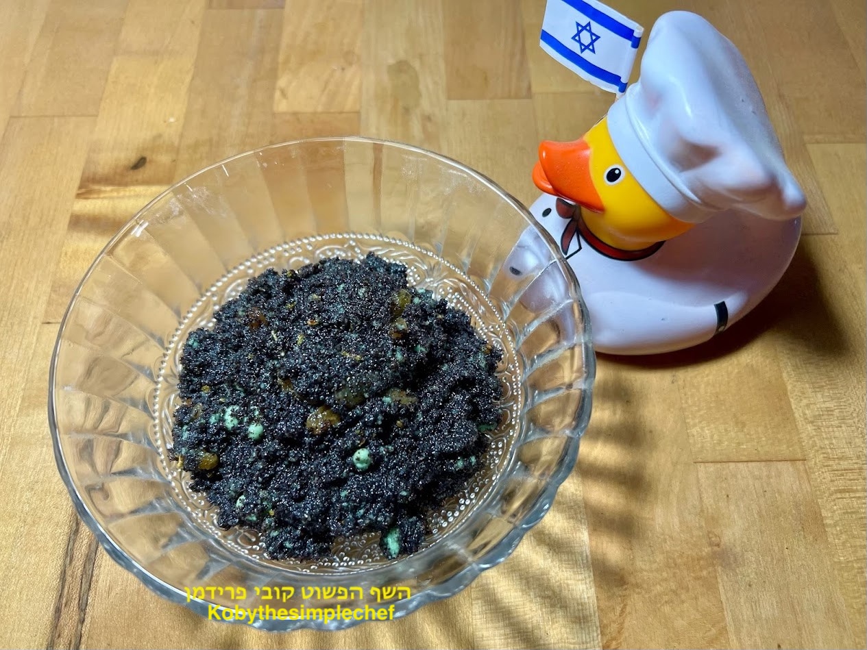 200 גרם פרג טחון טרי 50 גרם צימוקים לערבב,