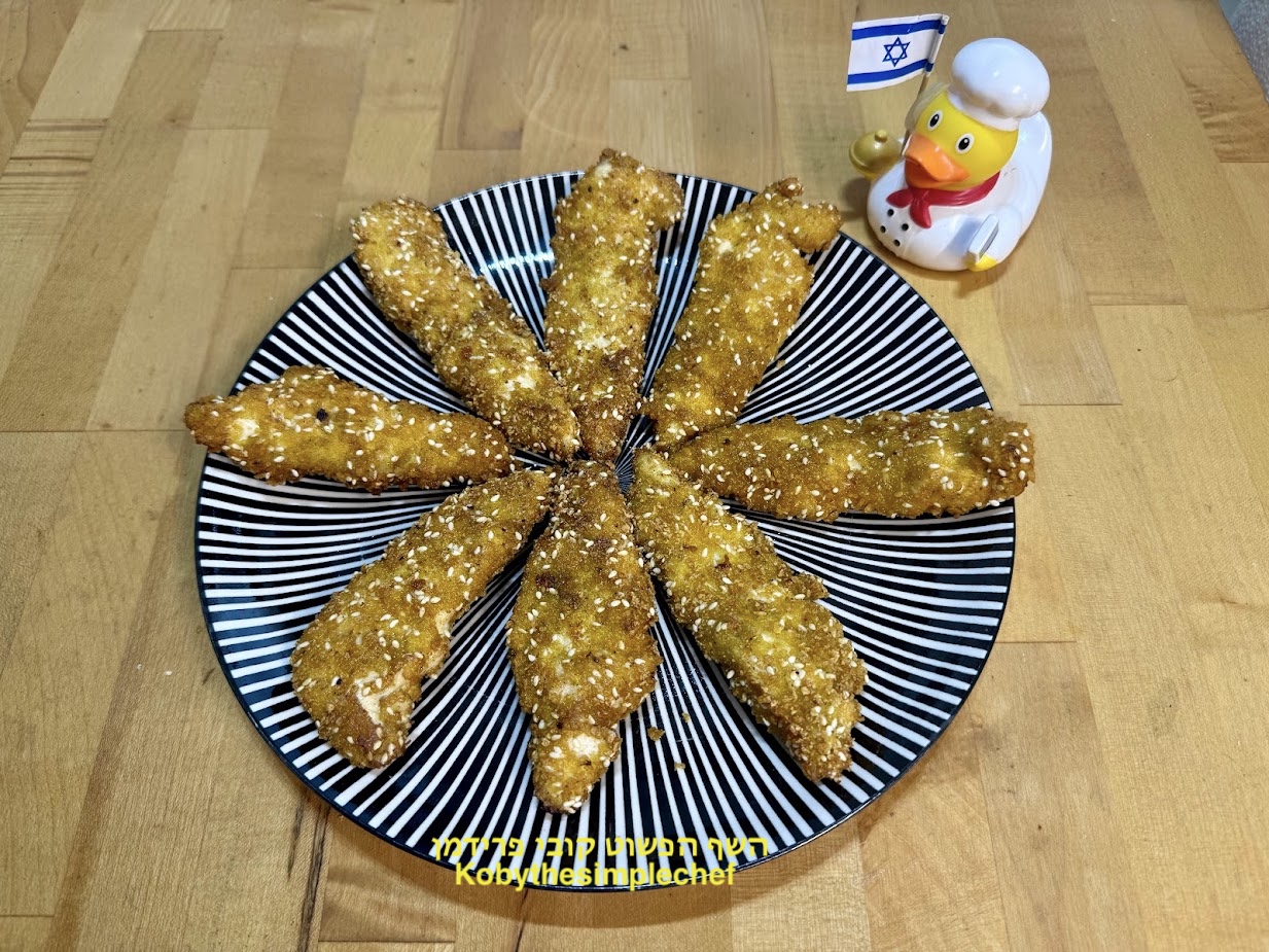 שניצלים מפילה עוף בציפוי פירורי קורנפלקס מתובלים ללא גלוטן כשר לפסח: