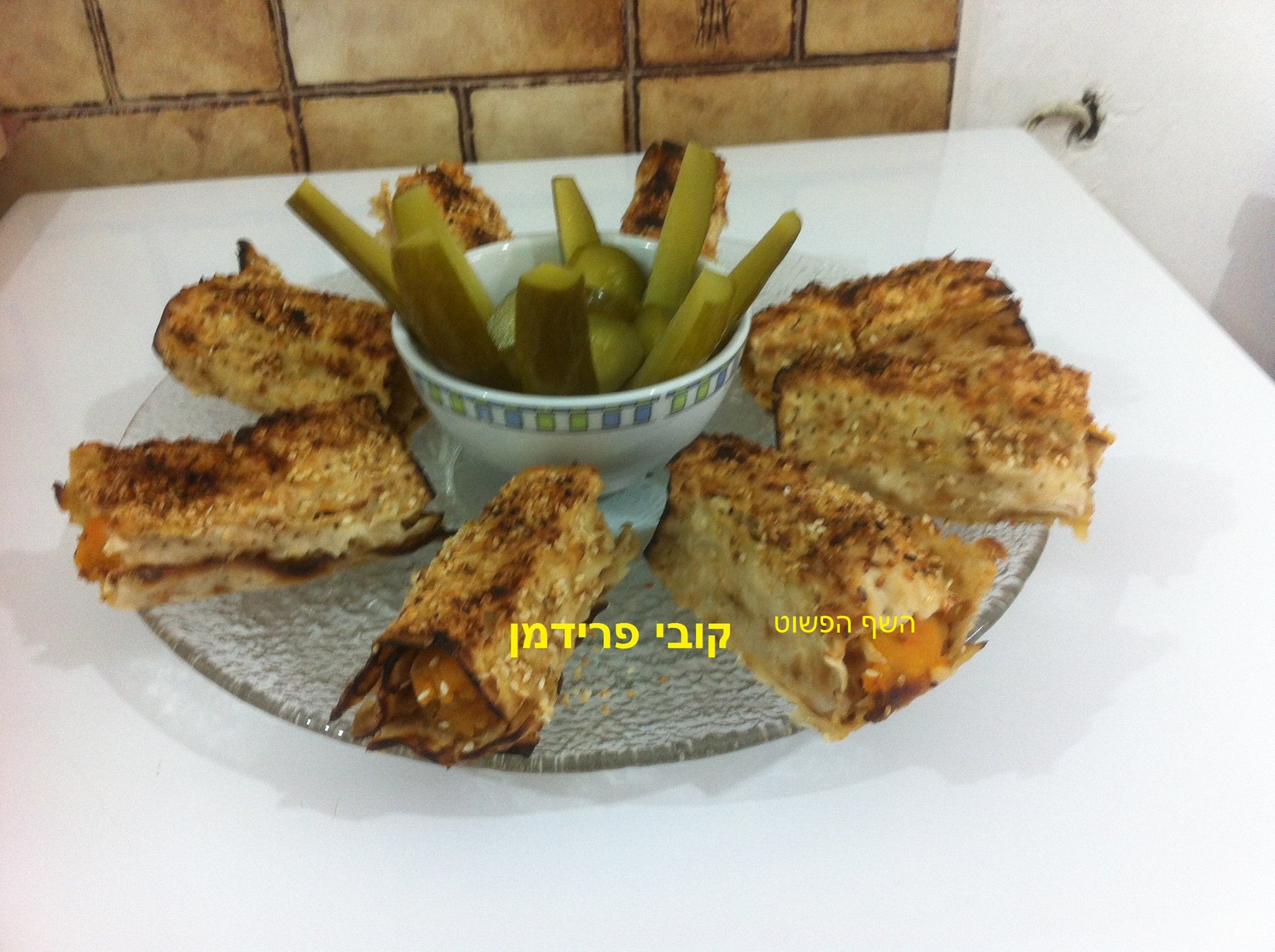 גלילות מצה עם פירה תפוחי אדמה בטטה ובצל מטוגן,
