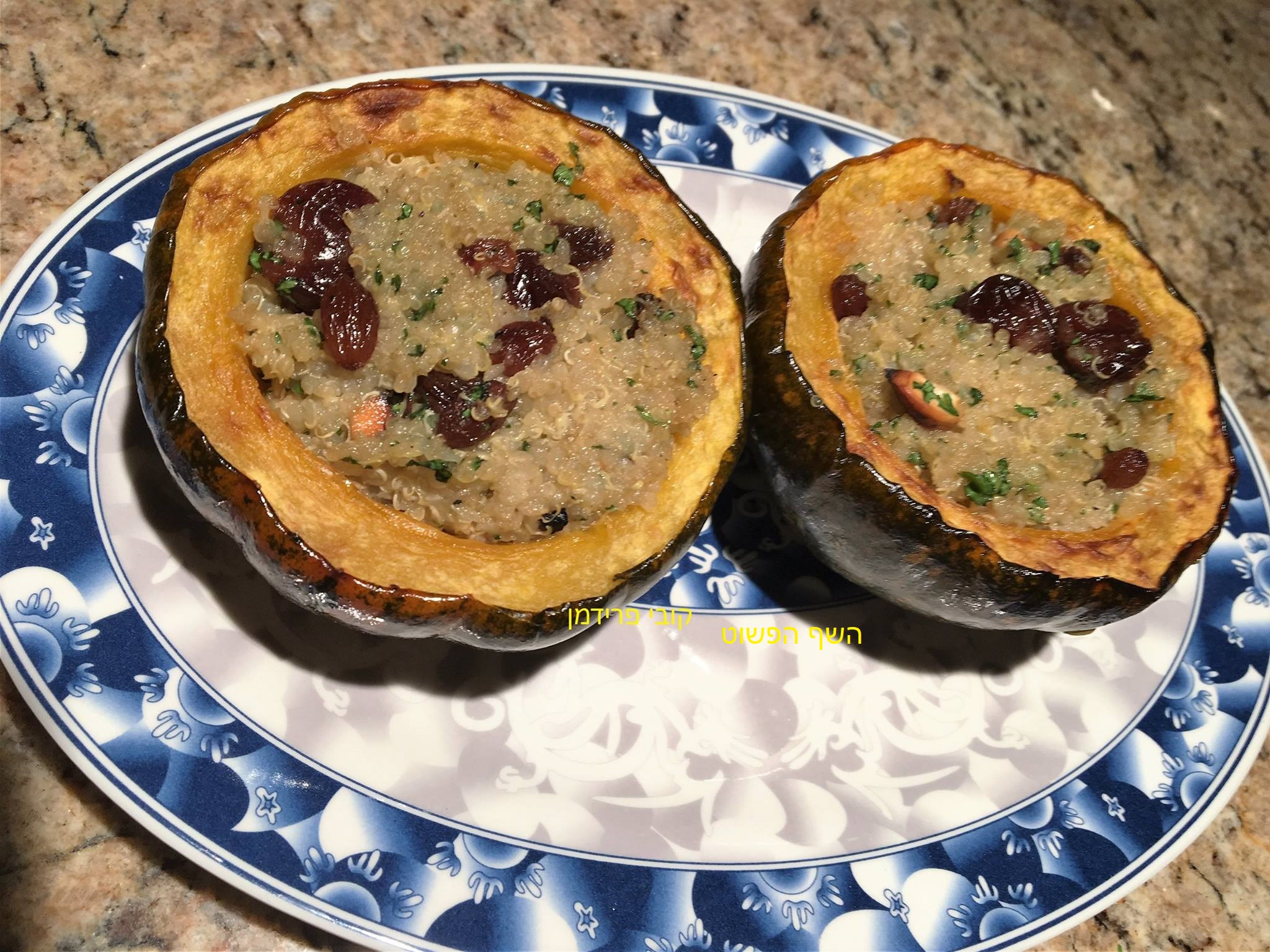 דלעת ערמונים ממולאת קינואה עם דובדבנים צימוקים קשיו ופטרוזיליה,