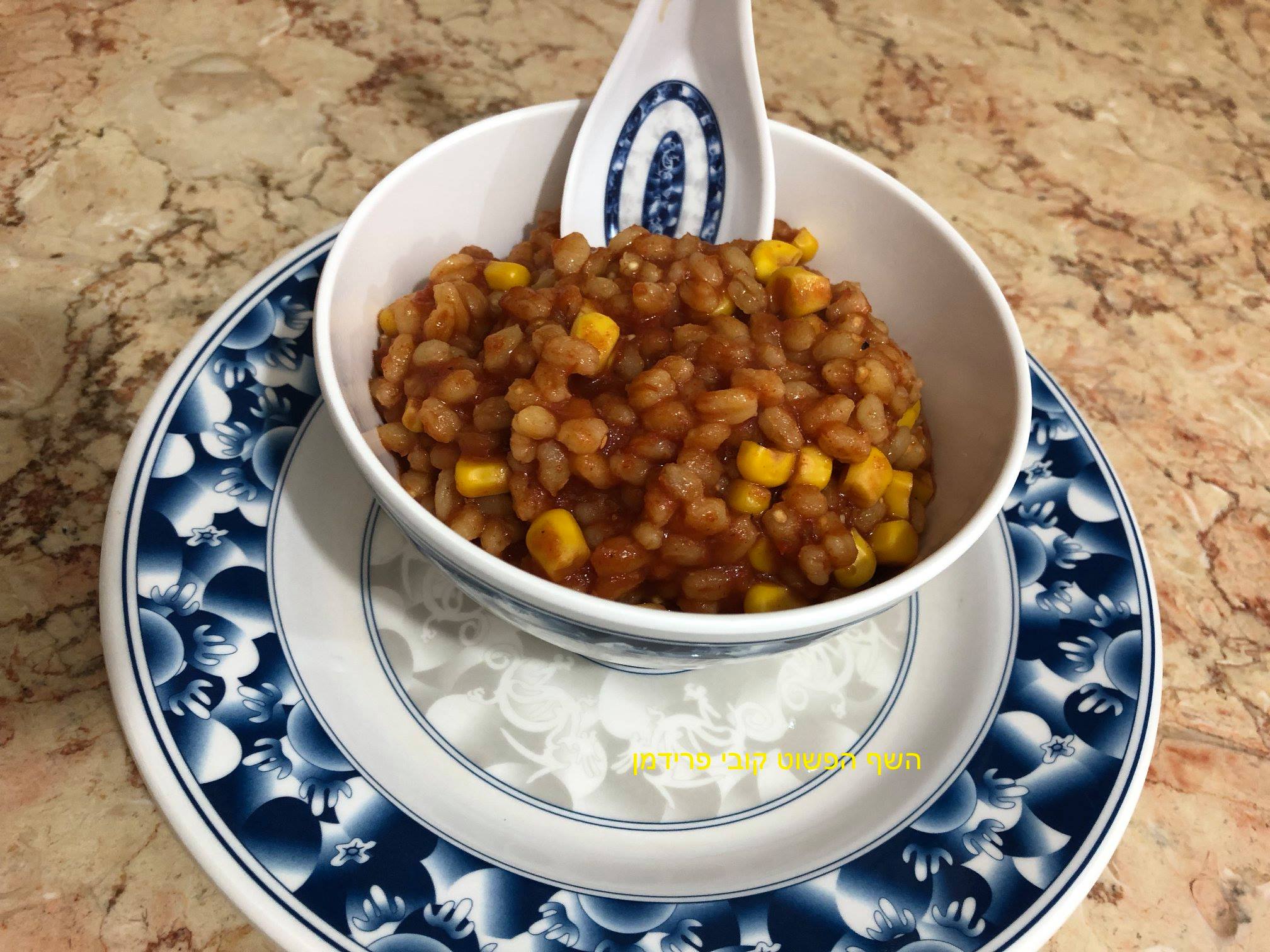 חיטה טבעונית עם תירס ברוטב עגבניות,