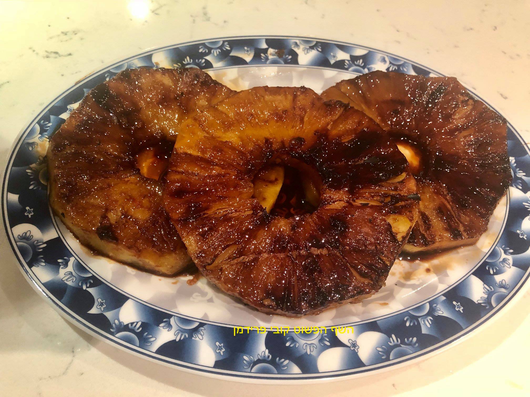 טבעות אננס (סטייק)על מחבת פסים עם צ'ילי מתוק,