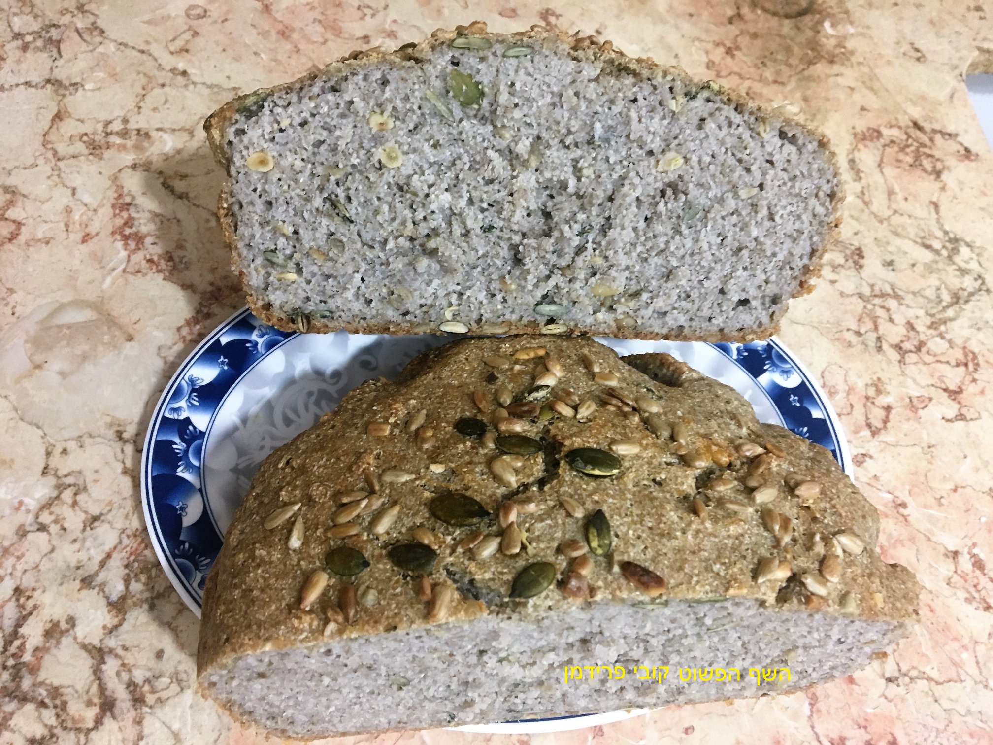 לחם 100% כוסמת טבעוני, ללא גלוטן עם תערובת גרעינים ועשבי תיבול כשר לפסח,