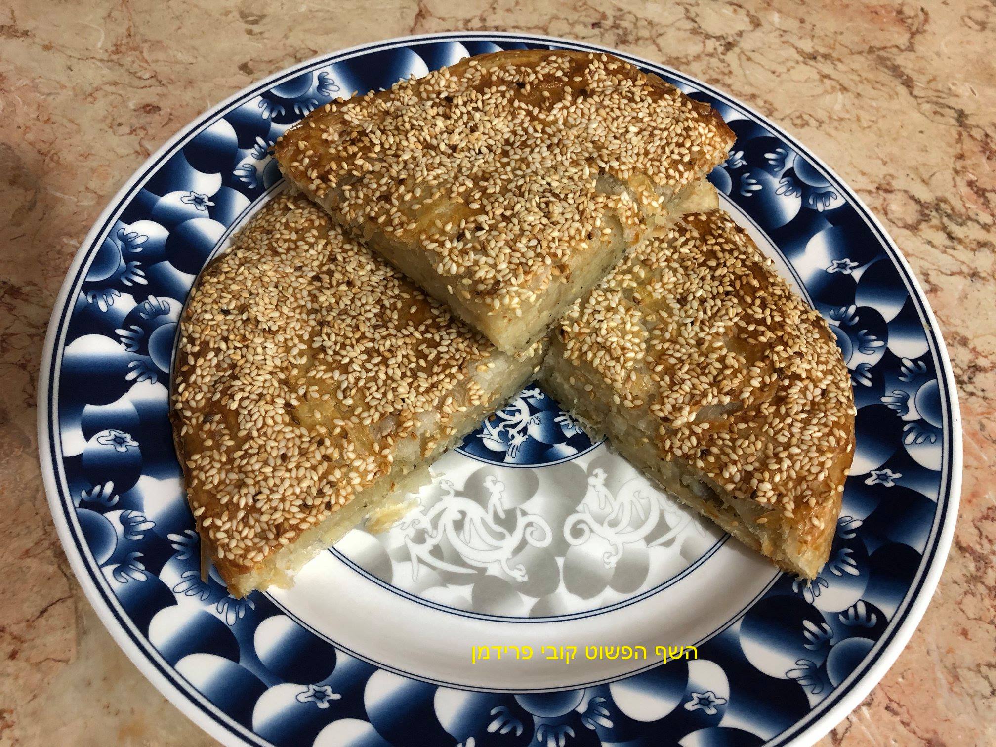 מאפה ממלווח במילוי פירה תפו"א עם בצל מקורמל וזעתר,