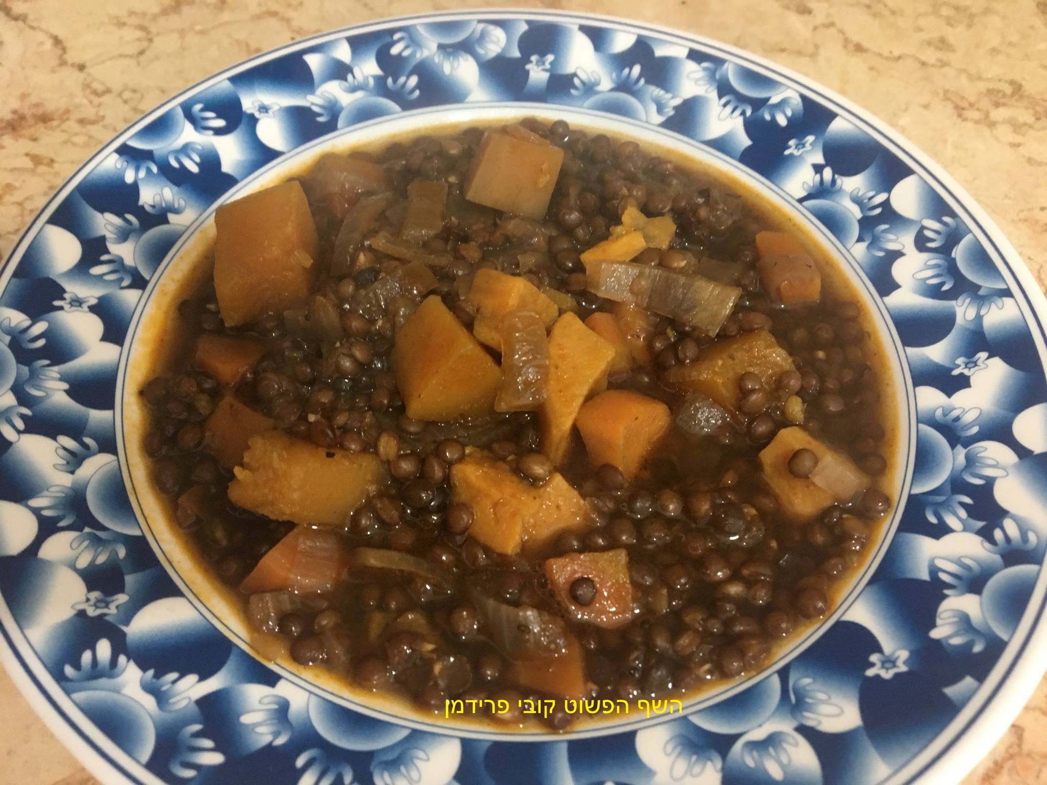 מרק עדשים שחורות גזר בטטה ודלורית טבעוני ללא גלוטן לחורף,