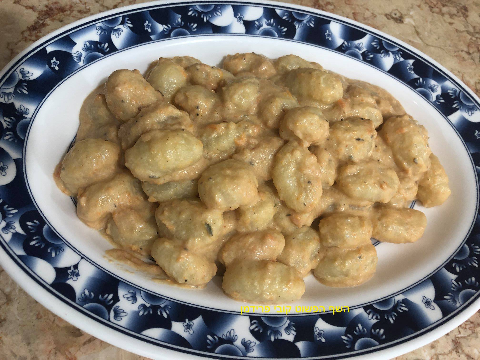 ניוקי תפו"א ברוטב בטטה טחינה טבעוני,