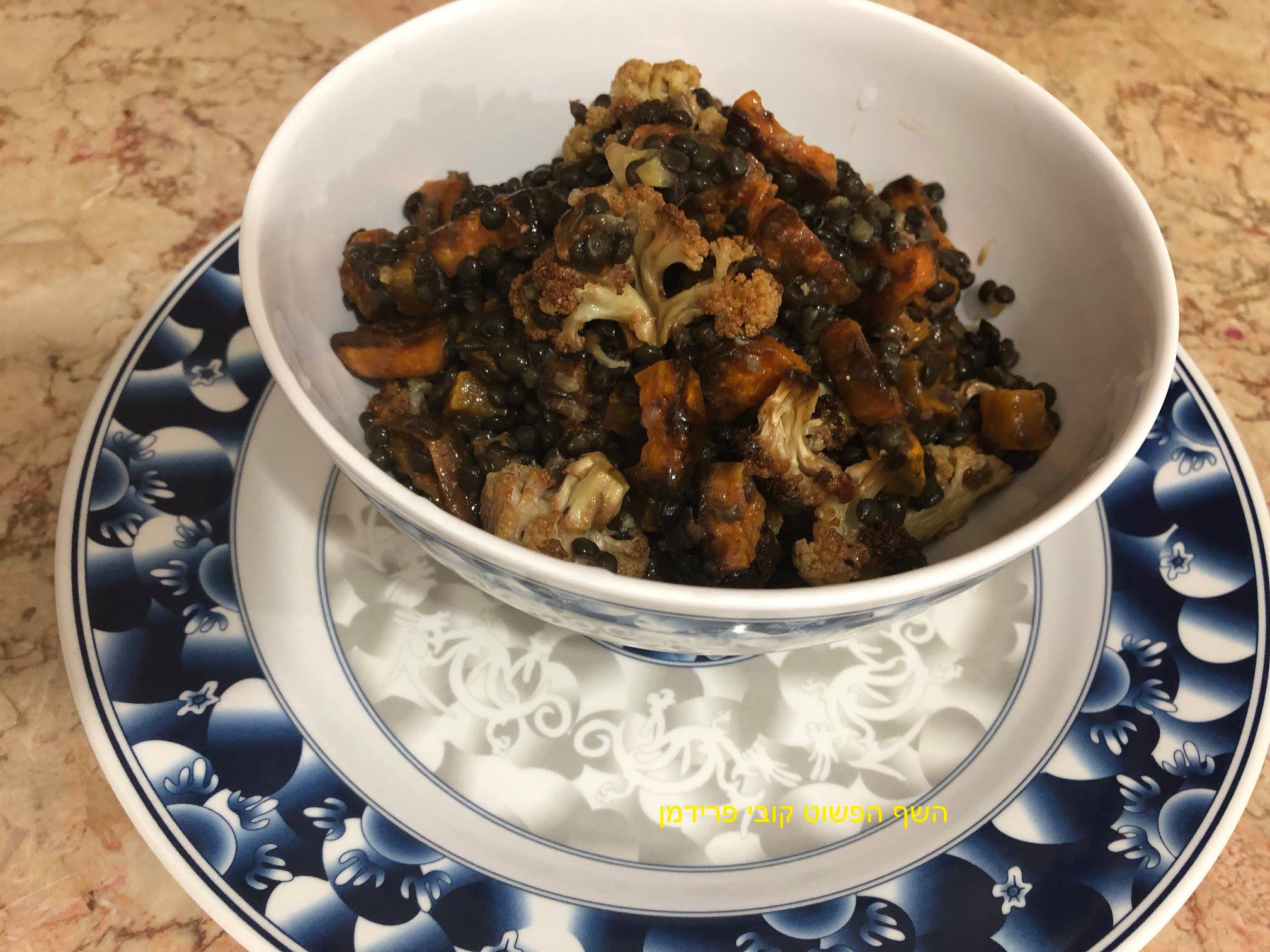 סלט דלעת בטטה כרובית ועדשים שחורות,