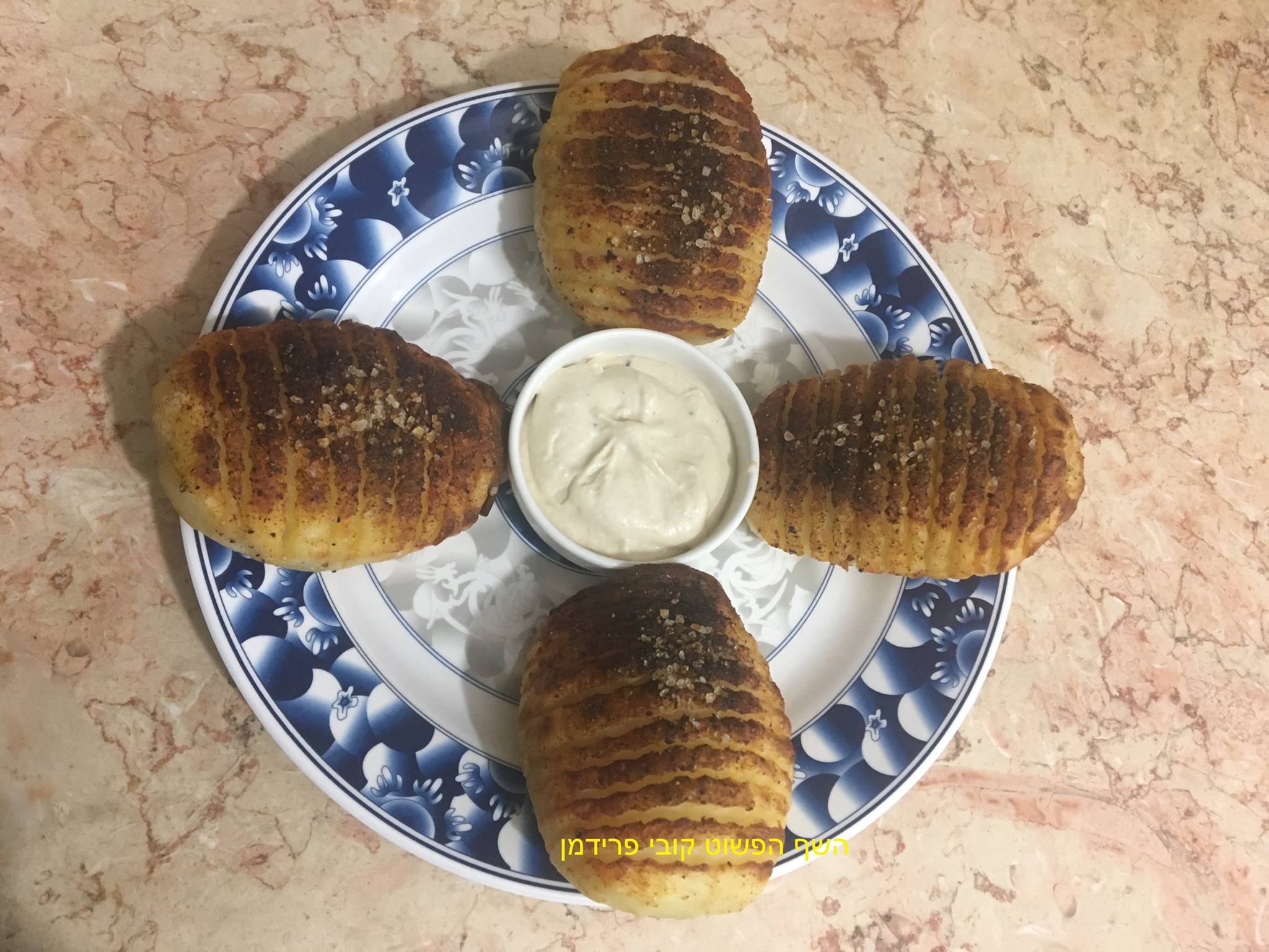 מניפות תפו"א שמן זית ותבלינים חתוכים זיגזג בתנור,