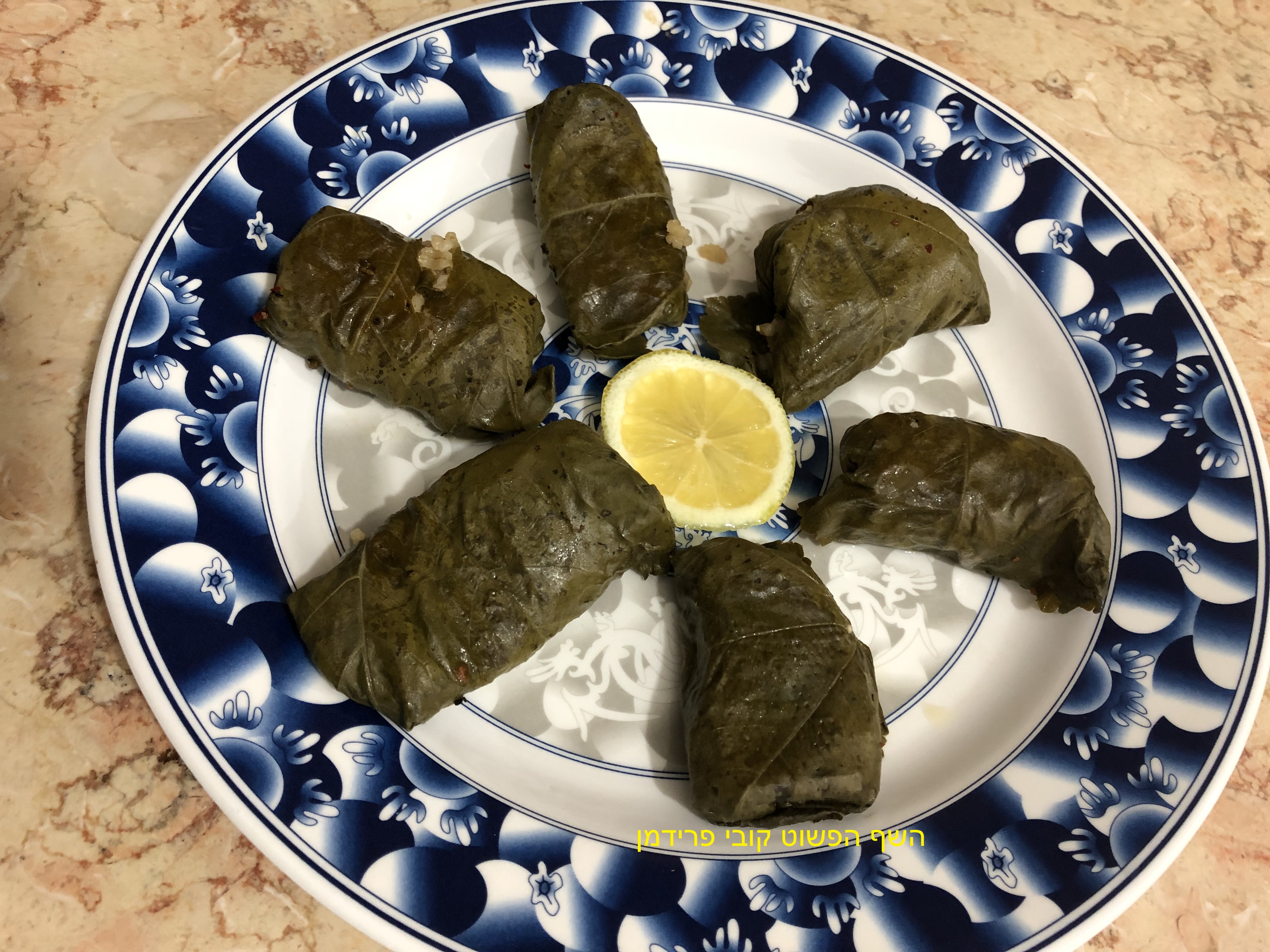 עלי חלמית (חובזה=לחם ערבי)ממולאים באורז בסמטי מלא עם ערמונים ובצל מקורמל,
