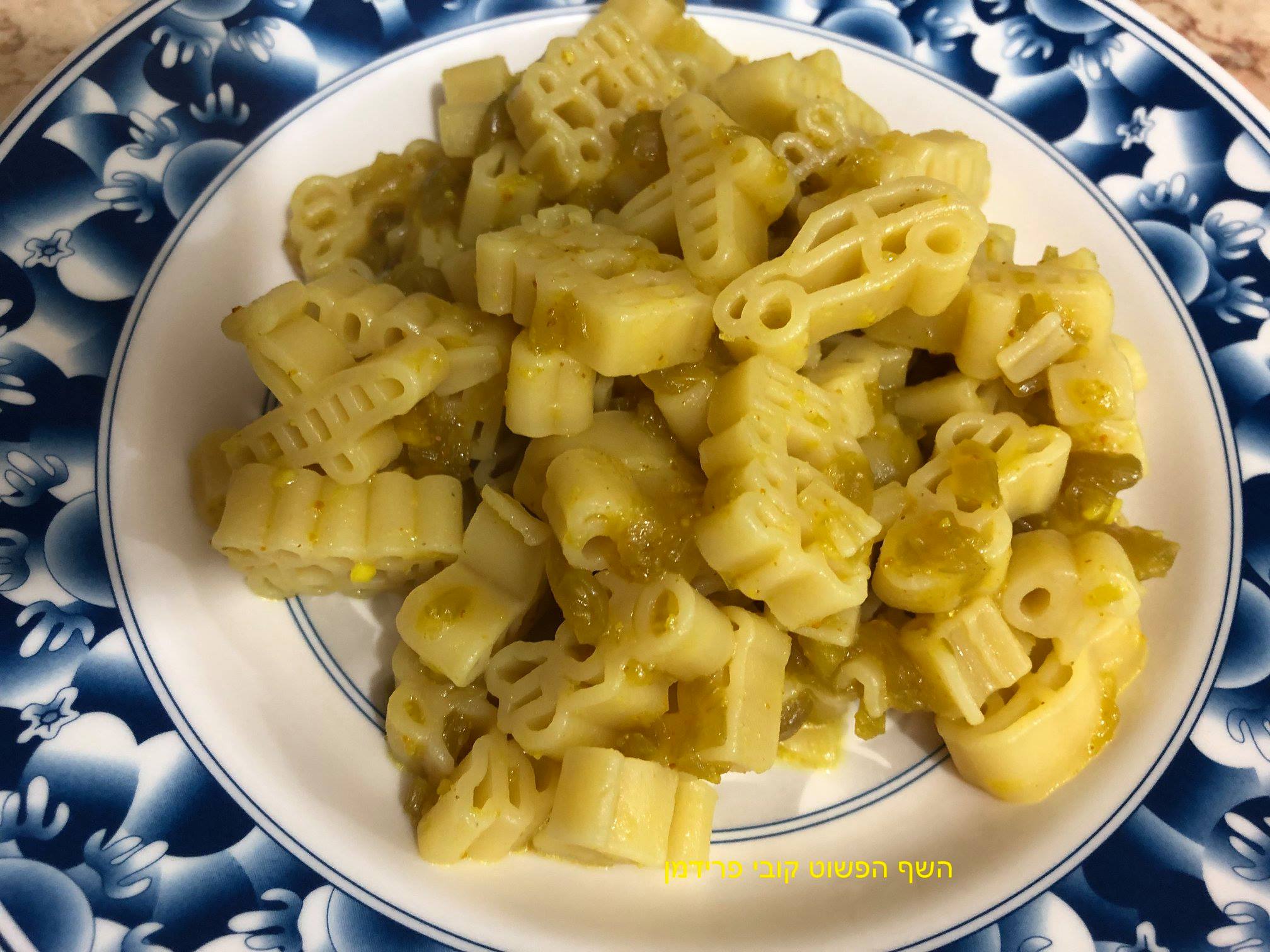 פסטה מכוניות ומטוסים ברוטב בצל וכורכום,