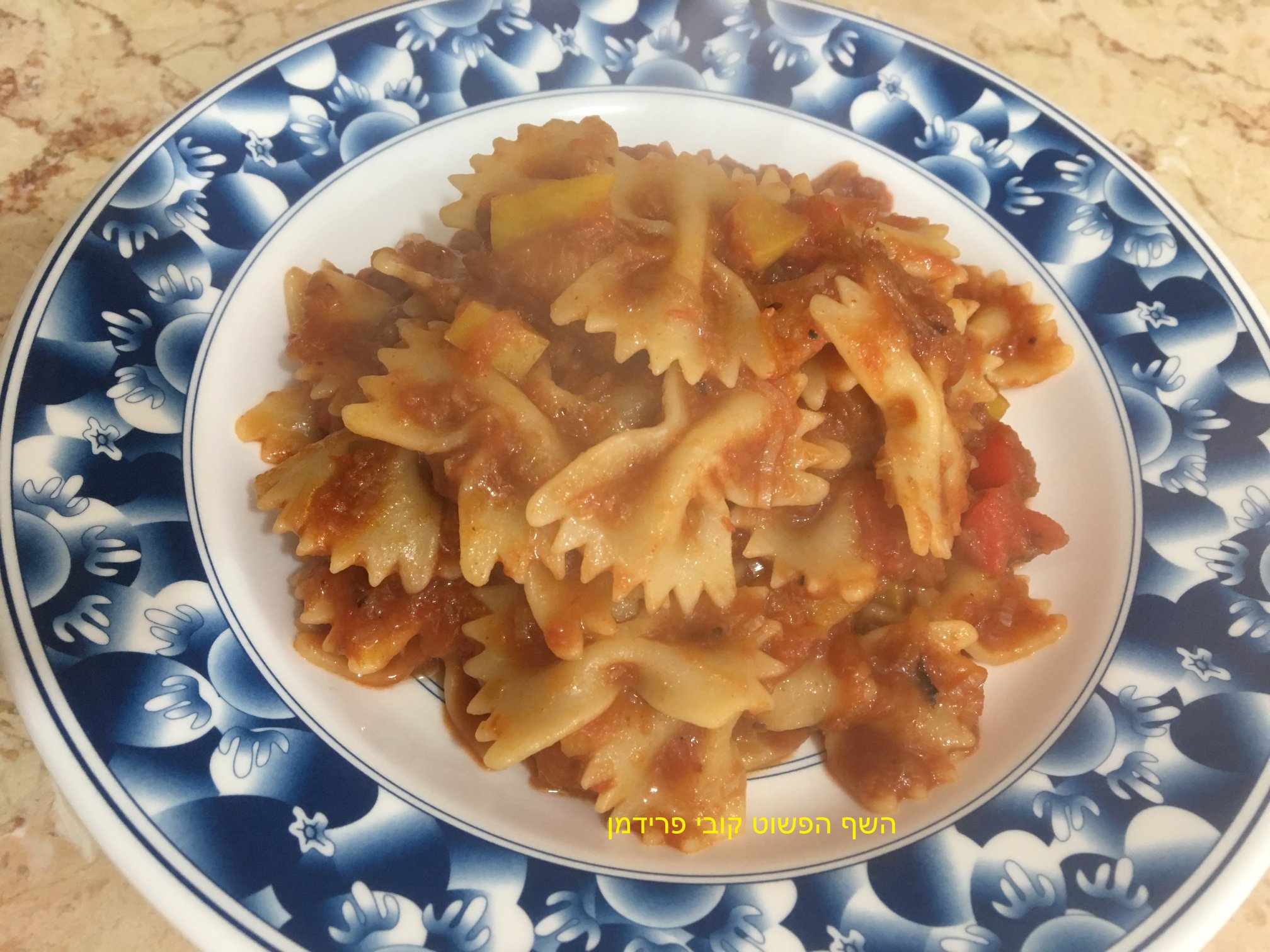 פסטה פארלפה (עניבות)ברוטב כרישה עגבניות ופלפלים עשיר,
