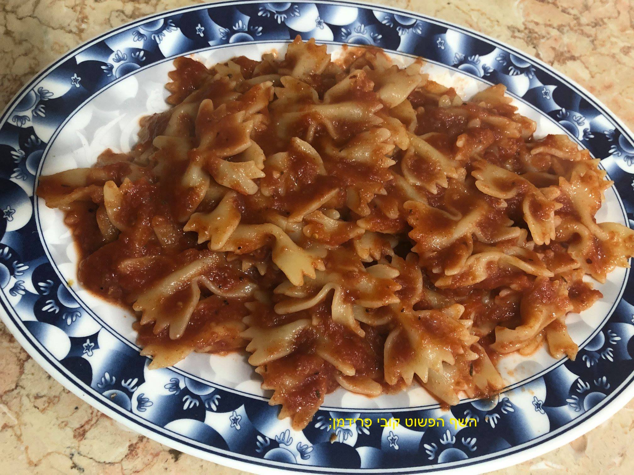 פסטה פארפלה (עניבות)ברוטב עגבניות וטימין,