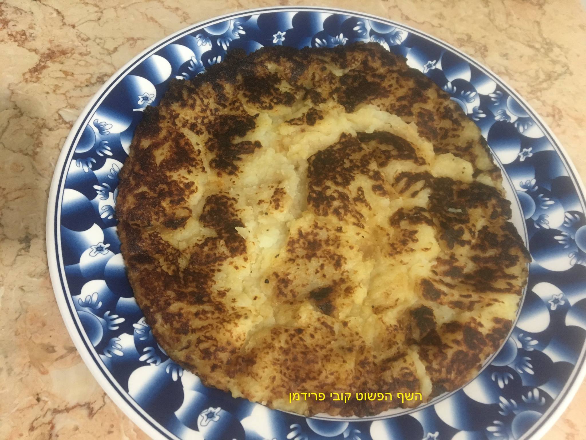 להכין פירה מ2 ק"ג תפו"א להוסיף 3 חצילים על האש ללא הקליפה חתוך דקדק,
