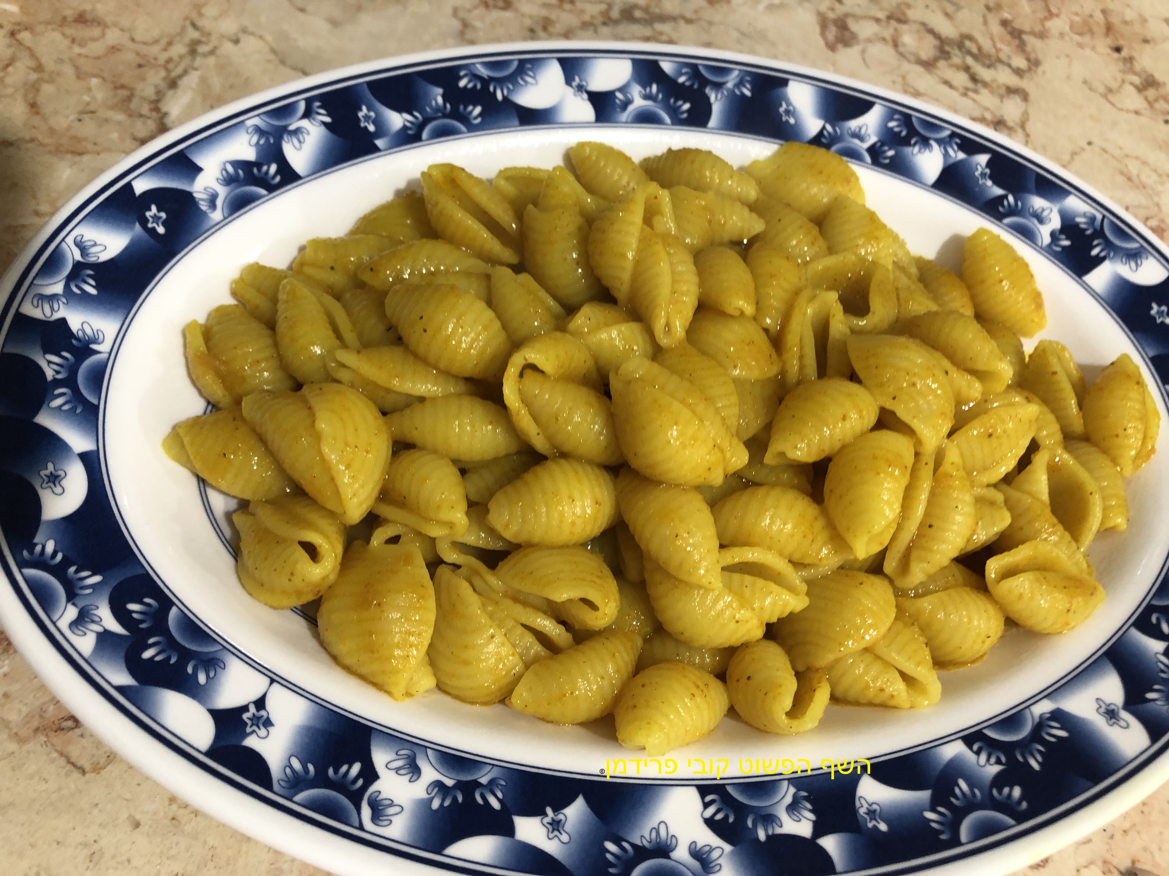 פסטה קונקיליה ריגטה(צדף)ברוטב כורכום ואבקת כרישה טבעוני,