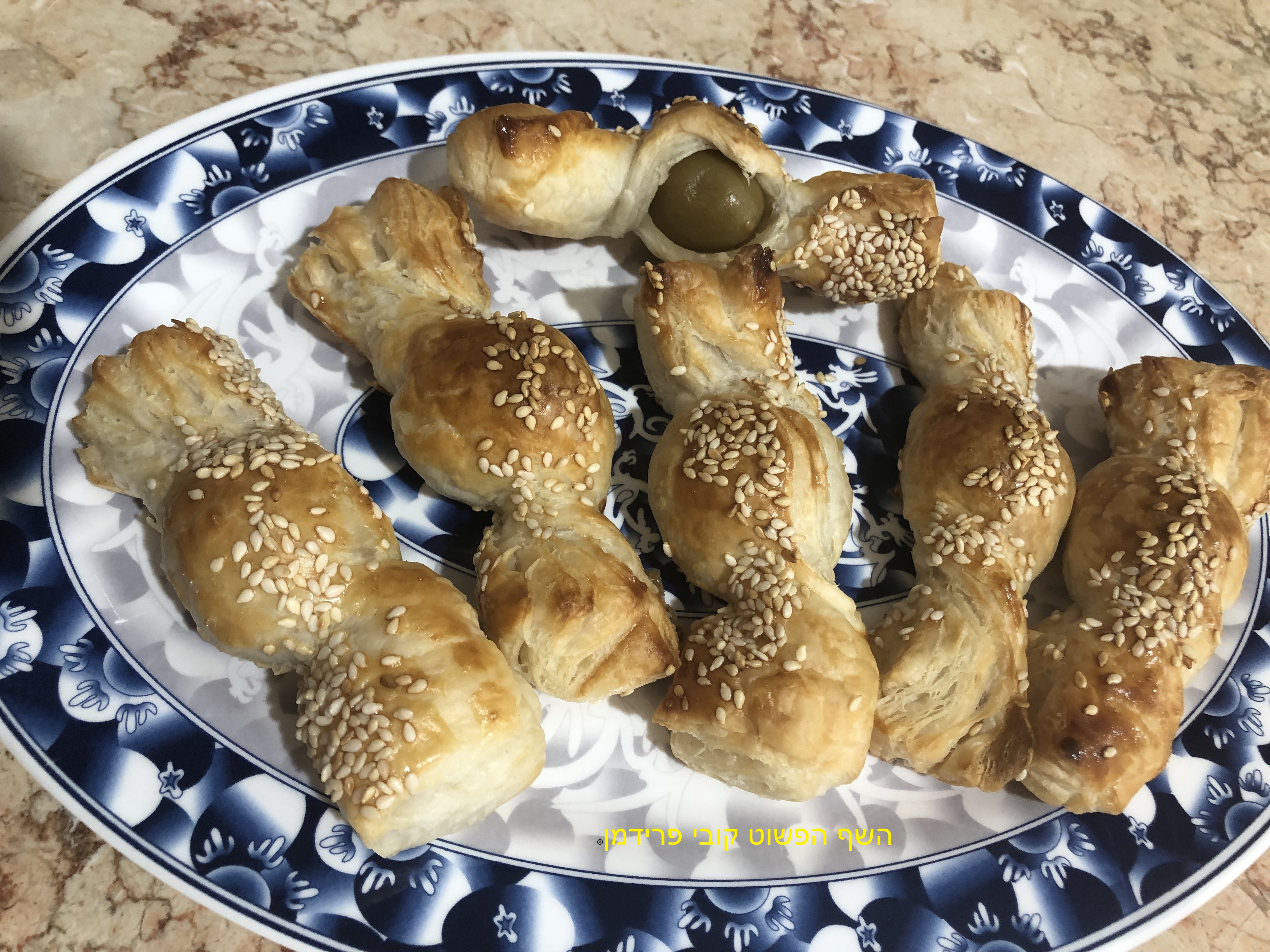 לגלגל את הבצק כמו מעטפת של סוכרייה על הזית,