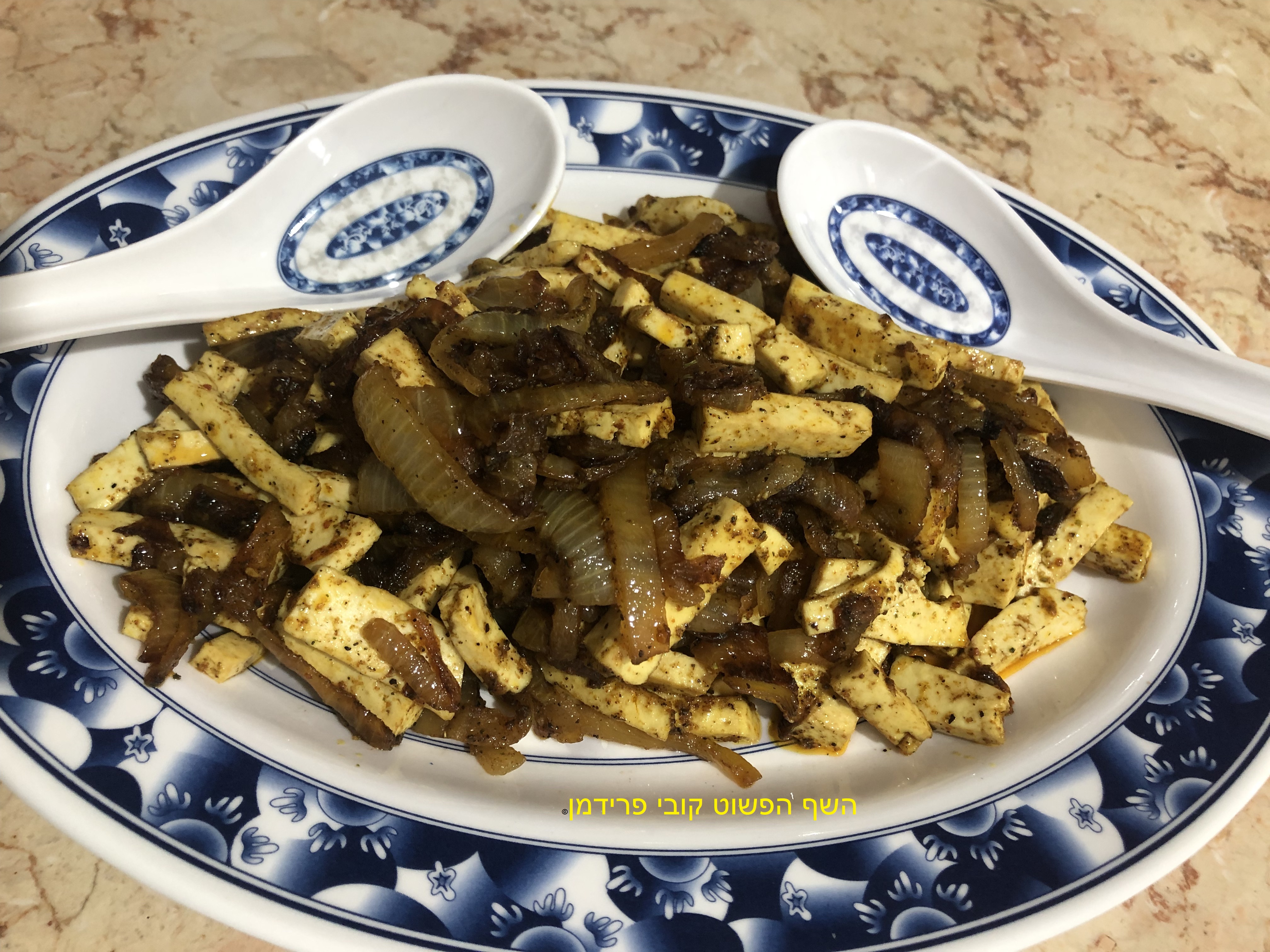להוסיף חבילת טופו משי (300 ג"ר)חתוכה לרצועות חצי ס"מ על חצי ס"מ באורך 2 ס"מ,