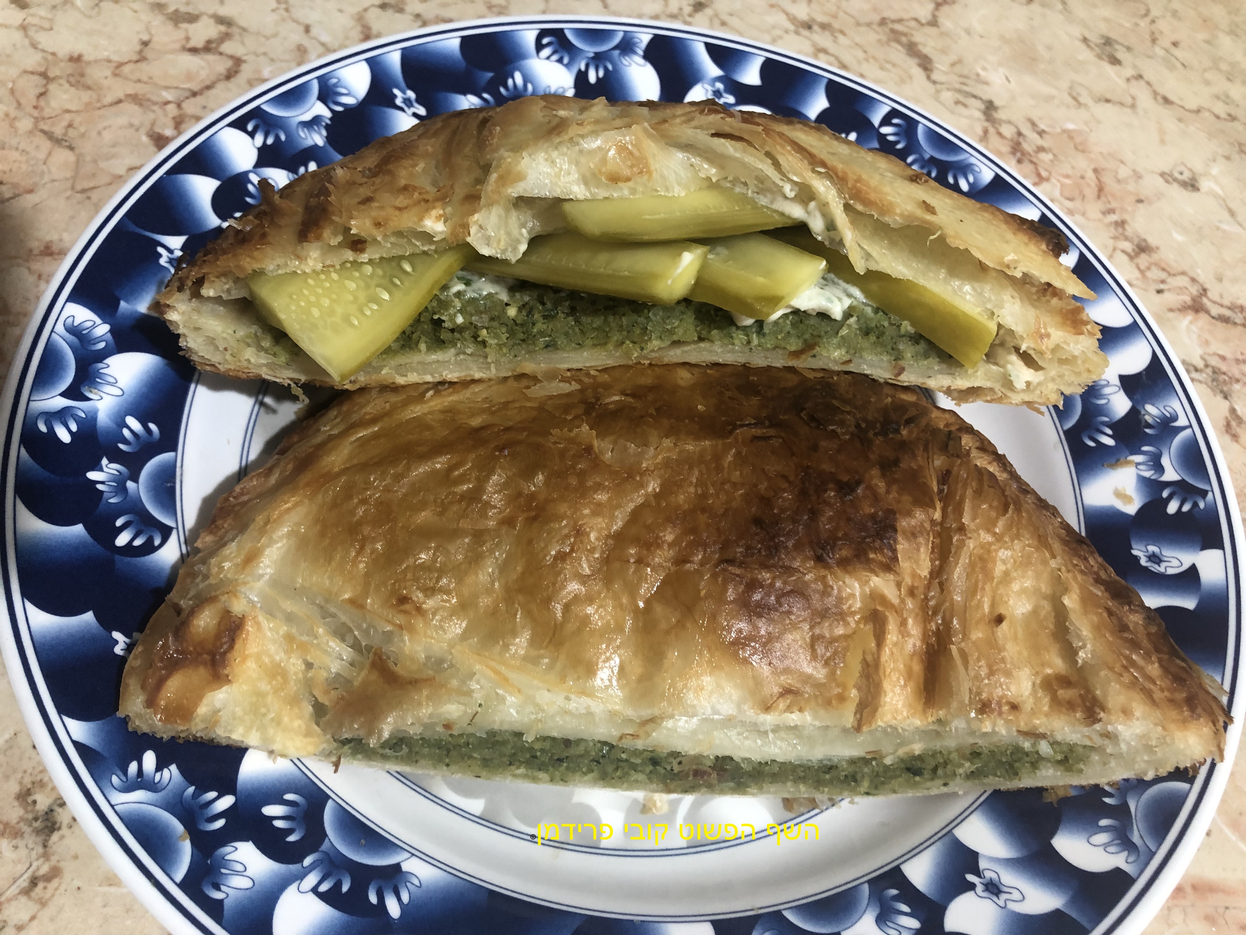 להניח על מלווח אחד דייסת פלאפל בעובי 1 וחצי ס"מ להשאיר בקצה 1 ס"מ ריק להדבקה,