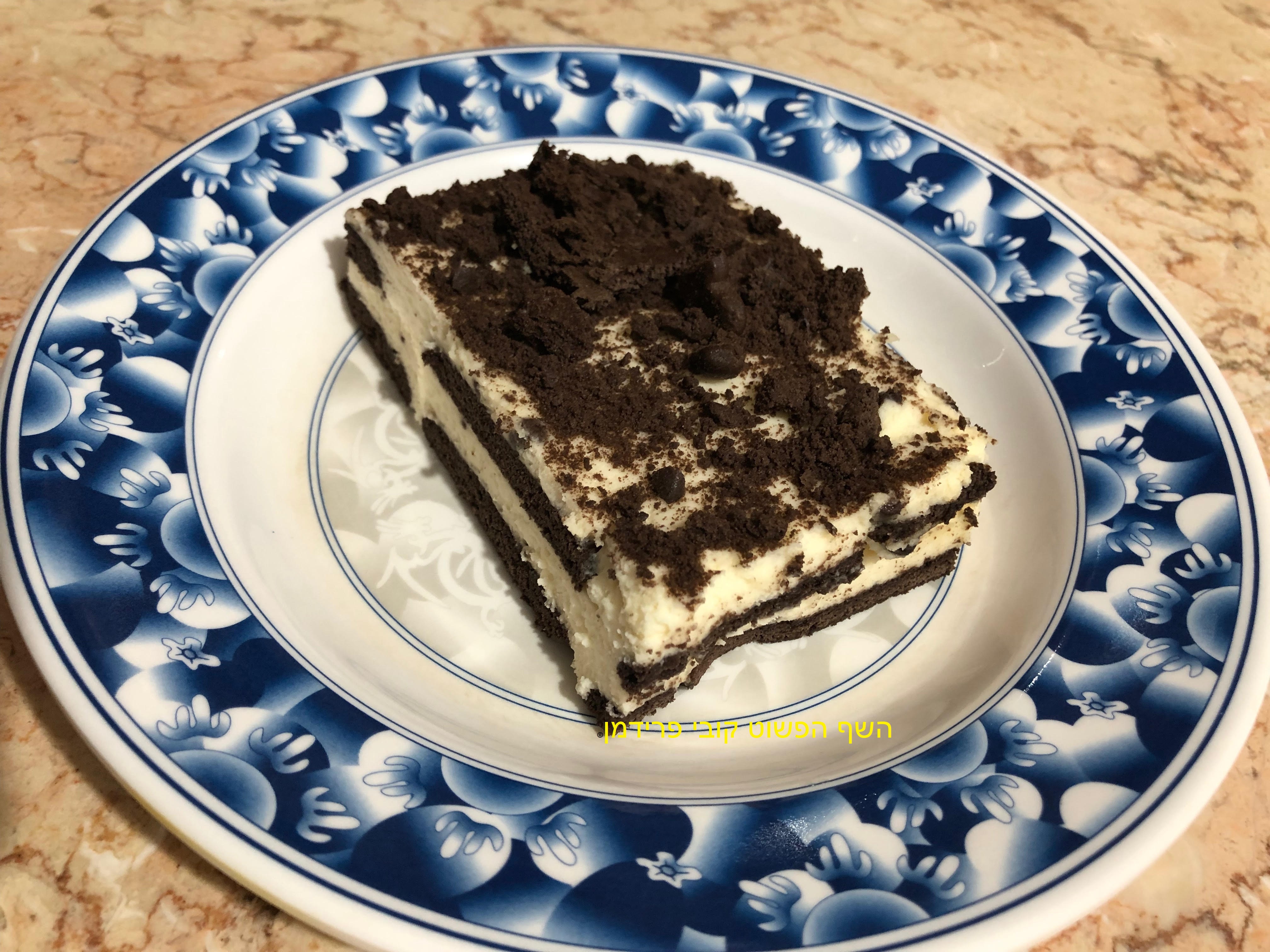 עוגת ביסקוויטים עשירה בטעם ווניל פצפוצי שוקולד בניחוח קפה ושוקולד מריר,